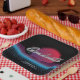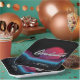 These fun 80's themed graduation party paper plate feature retro graphics and vintage chrome typography over a black background. It's the perfect design for a retro graduation party.