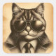 Cool Retro Cat in Aviator Sunglasses, Sepia Square Sticker