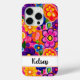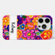 Make a retro statement with this groovy 70s inspired hippie flower power floral iphone 15 pro phone case! It's modern and trendy with bright multi-colored painted flowers. Make it uniquely yours with your name in a modern script font in black. It will look fabulous on your phone!