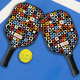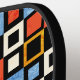 Unique retro geometric pattern features a cool grunge vintage design in colourful squares with black, red, yellow, blue & beige with an easy to use template for a monogrammed initials in stylish red lettering. The design repeats on the reverse side. Perfect pickleball gift for him or her.
