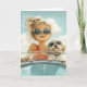 A stylish young girl and her fluffy dog enjoy a sunny road trip, both wearing sunglasses, exuding confidence and joy.