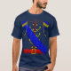 I give wanted to give this a 4 instead of a 5 because these Basic DARK T0shirts run unexpectedly SLIM or Narrow. Which is great if you do not have a potbelly, but I have a paunch. It isn't the shirt's fault that I've got a beer belly. The design and shirt itself is a quality cotton shirt. The color is more of a deep purple, but still a very pretty color. The Basic DARK T-shirts run a bit SLIMMER than the Basic Ts. The neck is a fraction narrower (or seems to be narrower) also. I'm a paunchy middle-aged woman and my neck is 12 inches (31cm) thick and the neckline fell about the same as in the photo of the man, and I had the desire to tug it a bit. So if you're a thick necked man or like loose shirts, be aware these are slimmer shirts. Once I get rid of my lockdown paunch it'll look great. The shirt washed well in cold water with no apparent bleeding. We don't have a dryer, so it hung dry. Did not shrink. Love the colors and the design. The design looks smaller on my shirt than it does on the model on-line. But still, it looks good on the shirt. The printing looks as it does on the model, just the size seems fractionally smaller. Washed garment in cold water, hung dry and design appeared unaffected.