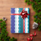 Wrap your gifts with a fun and modern pattern of scalloped stripe columns. This pattern is a mix of blues and blue green scallops and feels wintery and festive on a crisp white background and brings a sense of graphic whimsy to the gift stack.