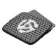 A DJ friendly gift, a silver chrome like retro 45 spacer on a speaker grille device decor. Let the music play!