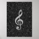 Cool silver glitter shining effects treble clef music note black shining glitter effects background image print