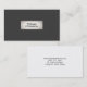 Professional name front networking card with a clean minimal design and solid dark grey background. Digital image of metallic silver plaque - NOT the real thing.. . A professional, elegant card. Add, arrange and re-size as desired. Premium card stock is suggested when ordering darker designs. This will insure a rich, sturdy card that stands up to surface scratches with a rich, sharp print. Prefer a different colour? Easily customise background to your choice with the colour swatch option. A great card, for artists, photographers, producers. writers, computer technicians, consultants, designers, entrepreneurs, bloggers filmmakers, authors, therapists and more.