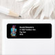 Address labels with an illustration of a humourous skeleton. Wearing a top hat, holding a drink. He has a big smile on his face. Cute and spooky fun for Halloween.