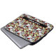 Cool laptop case printed with a hand drawn pattern of skeleton skulls wearing white chef hats, surrounded by red roses, playing cards and kitchen knives
