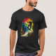I give wanted to give this a 4 instead of a 5 because these Basic DARK T0shirts run unexpectedly SLIM or Narrow. Which is great if you do not have a potbelly, but I have a paunch. It isn't the shirt's fault that I've got a beer belly. The design and shirt itself is a quality cotton shirt. The color is more of a deep purple, but still a very pretty color. The Basic DARK T-shirts run a bit SLIMMER than the Basic Ts. The neck is a fraction narrower (or seems to be narrower) also. I'm a paunchy middle-aged woman and my neck is 12 inches (31cm) thick and the neckline fell about the same as in the photo of the man, and I had the desire to tug it a bit. So if you're a thick necked man or like loose shirts, be aware these are slimmer shirts. Once I get rid of my lockdown paunch it'll look great. The shirt washed well in cold water with no apparent bleeding. We don't have a dryer, so it hung dry. Did not shrink. Love the colors and the design. The design looks smaller on my shirt than it does on the model on-line. But still, it looks good on the shirt. The printing looks as it does on the model, just the size seems fractionally smaller. Washed garment in cold water, hung dry and design appeared unaffected.