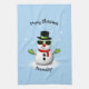 Cool Snowman Adorable Smirk Christmas Personalise Tea Towel