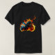 I give wanted to give this a 4 instead of a 5 because these Basic DARK T0shirts run unexpectedly SLIM or Narrow. Which is great if you do not have a potbelly, but I have a paunch. It isn't the shirt's fault that I've got a beer belly. The design and shirt itself is a quality cotton shirt. The color is more of a deep purple, but still a very pretty color. The Basic DARK T-shirts run a bit SLIMMER than the Basic Ts. The neck is a fraction narrower (or seems to be narrower) also. I'm a paunchy middle-aged woman and my neck is 12 inches (31cm) thick and the neckline fell about the same as in the photo of the man, and I had the desire to tug it a bit. So if you're a thick necked man or like loose shirts, be aware these are slimmer shirts. Once I get rid of my lockdown paunch it'll look great. The shirt washed well in cold water with no apparent bleeding. We don't have a dryer, so it hung dry. Did not shrink. Love the colors and the design. The design looks smaller on my shirt than it does on the model on-line. But still, it looks good on the shirt. The printing looks as it does on the model, just the size seems fractionally smaller. Washed garment in cold water, hung dry and design appeared unaffected.