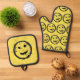Cool Stained Happy Smiling face pattern yellow Oven Mitt & Pot Holder Set