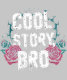 A bold and edgy art print featuring the popular phrase 'Cool Story, Bro' in a distressed grunge style, surrounded by intricate roses and thorns. Perfect for lovers of dark aesthetics and statement pieces.