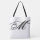A stylish white tote bag with your name and initials monogrammed in a script font style