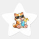 Cute cat wearing sunglasses and enjoying a refreshing drink – perfect summer vibe design.