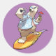 Cool Surfing Polar Bear with Cocktail Cartoon Classic Round Sticker