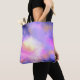 An elegant tote bag with a nice combination of soft pastels and bright colours. A colourful abstract painting with a cosmic space image in pink, purple and yellow watercolors.  The colours blend and mix together creating luminous ethereal clouds with little twinkling stars peppered throughout.