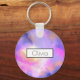 A dreamy personalised keychain with a nice combination of soft pastels and bright colours. A colourful abstract painting with a cosmic space image in pink, purple and yellow watercolors. The colours blend and mix together creating luminous ethereal clouds with little twinkling stars peppered throughout.
