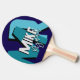 Stylish table-tennis-racket personalized with his name in cool font style, and with oversized blue initial letters with shadow... modern monogrammed design, with the name of the stylish player...
