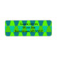 These return address labels have a Bauhaus design of repeating trapezoids in shades of blue and green.