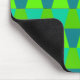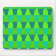 This mouse pad has a Bauhaus design of repeating trapezoids in shades of blue and green.