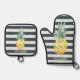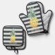 Cool Tropical Gold Pineapple Navy Blue Stripes Oven Mitt & Pot Holder Set