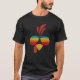 I give wanted to give this a 4 instead of a 5 because these Basic DARK T0shirts run unexpectedly SLIM or Narrow. Which is great if you do not have a potbelly, but I have a paunch. It isn't the shirt's fault that I've got a beer belly. The design and shirt itself is a quality cotton shirt. The color is more of a deep purple, but still a very pretty color. The Basic DARK T-shirts run a bit SLIMMER than the Basic Ts. The neck is a fraction narrower (or seems to be narrower) also. I'm a paunchy middle-aged woman and my neck is 12 inches (31cm) thick and the neckline fell about the same as in the photo of the man, and I had the desire to tug it a bit. So if you're a thick necked man or like loose shirts, be aware these are slimmer shirts. Once I get rid of my lockdown paunch it'll look great. The shirt washed well in cold water with no apparent bleeding. We don't have a dryer, so it hung dry. Did not shrink. Love the colors and the design. The design looks smaller on my shirt than it does on the model on-line. But still, it looks good on the shirt. The printing looks as it does on the model, just the size seems fractionally smaller. Washed garment in cold water, hung dry and design appeared unaffected.