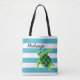 Fun sea turtle with sunglasses beach bag with custom name. Cool shades of blue and greens or change colours as preferred.