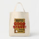 The printing came out very well, better than I had anticipated. The natural color fabric is sturdy with strong seams and comfortable handles. This tote fits easily over my shoulder. As it is filled, the bottom flattens out--very cool! I would buy this product again. This grocery tote holds a lot of groceries! The image quality was very good. The colors were a little darker than I had expected. The darkness may have been due to printing on a natural color fabric rather than on white. The cat design is attractively centered on the tote. The spirit of the design is very lively, just as it appears on the Zazzle website.