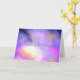 An elegant happy birthday greeting card with a nice combination of soft pastels and bright colours. A colourful abstract painting with a cosmic space image in pink, purple and yellow watercolors. The colours blend and mix together creating luminous ethereal clouds with little twinkling stars peppered throughout. The inside of the card has a decorative bunting banner and a customisable message.