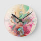 Cool watercolours treble clef music notes swirls round clock