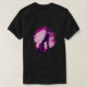 I give wanted to give this a 4 instead of a 5 because these Basic DARK T0shirts run unexpectedly SLIM or Narrow. Which is great if you do not have a potbelly, but I have a paunch. It isn't the shirt's fault that I've got a beer belly. The design and shirt itself is a quality cotton shirt. The color is more of a deep purple, but still a very pretty color. The Basic DARK T-shirts run a bit SLIMMER than the Basic Ts. The neck is a fraction narrower (or seems to be narrower) also. I'm a paunchy middle-aged woman and my neck is 12 inches (31cm) thick and the neckline fell about the same as in the photo of the man, and I had the desire to tug it a bit. So if you're a thick necked man or like loose shirts, be aware these are slimmer shirts. Once I get rid of my lockdown paunch it'll look great. The shirt washed well in cold water with no apparent bleeding. We don't have a dryer, so it hung dry. Did not shrink. Love the colors and the design. The design looks smaller on my shirt than it does on the model on-line. But still, it looks good on the shirt. The printing looks as it does on the model, just the size seems fractionally smaller. Washed garment in cold water, hung dry and design appeared unaffected.