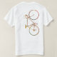 Simple design of a bicycle at the back of a white t-shirt.