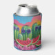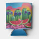 This playful and surreal image features a group of anthropomorphic cacti sporting cool sunglasses, surrounded by juicy watermelon slices and scattered pink candies. The vibrant color palette and whimsical composition create a fun and summery vibe.