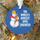 A hard hat topped snowman with a transit and the world's coolest civil engineer text is a humourous engineering gift design for college students and engineers at birthdays, graduations and winter holidays.