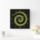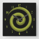 A cool hypnotic looking black and yellow clock with matching yellow numbers.