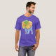 I give wanted to give this a 4 instead of a 5 because these Basic DARK T0shirts run unexpectedly SLIM or Narrow. Which is great if you do not have a potbelly, but I have a paunch. It isn't the shirt's fault that I've got a beer belly. The design and shirt itself is a quality cotton shirt. The color is more of a deep purple, but still a very pretty color. The Basic DARK T-shirts run a bit SLIMMER than the Basic Ts. The neck is a fraction narrower (or seems to be narrower) also. I'm a paunchy middle-aged woman and my neck is 12 inches (31cm) thick and the neckline fell about the same as in the photo of the man, and I had the desire to tug it a bit. So if you're a thick necked man or like loose shirts, be aware these are slimmer shirts. Once I get rid of my lockdown paunch it'll look great. The shirt washed well in cold water with no apparent bleeding. We don't have a dryer, so it hung dry. Did not shrink. Love the colors and the design. The design looks smaller on my shirt than it does on the model on-line. But still, it looks good on the shirt. The printing looks as it does on the model, just the size seems fractionally smaller. Washed garment in cold water, hung dry and design appeared unaffected.