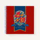 Cooper name meaning shield red blue boys notebook. Galiant royal crown knights style crest shield monogram letter C art name perfect for kids and teens in shades of red, blue, grey and yellow. Personalise with your own name beginning with C and name meaning or a message or subject for a personalised touch. Reads Cooper A barrel maker. Strong, dexterous, ingenious and skilful. Unique royal crest graphic drawing, featuring a lion's head, crown, star and initial monogram C letter, graphic art and design by Sarah Trett www.sarahtrett.com for www.mylittleeden.com