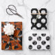 These fun wrapping paper sheets for basketball players or fans feature three individual, complementary patterns -- sheet 1 features a 3D look pattern of varied size basketballs that have 2 recolored panels--one black and one grey--overlying the image of a group of basketballs whose surfaces can be seen between the patterned basketballs - sheet 2 has simple white basketball shapes on customisable black - sheet 3 has a simple mirrored pattern of black and grey basketballs on customisable white - by katz_d_zynes