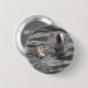 This button features a photograph of a Coot and her chick swimming on a tidal river. The female is grey with a white patch on her head and red eyes, while the tiny fluffy chick is pale grey with a white front.