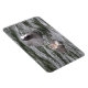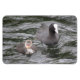 This awesome magnet features a photograph of a Coot and her chick swimming on a tidal river. The female is grey with a white patch on her head and red eyes, while the tiny fluffy chick is pale grey with a white front.