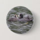 This button features a photograph of a Coot feeding a fish to its hungry chick. The adult bird has a white patch on the top of its head and a red eye, while the cute little chick is fluffy and grey.