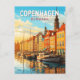 Copenhagen retro vector travel design. Copenhagen, Denmark’s capital, sits on the coastal islands of Zealand and Amager. It’s linked to Malmo in southern Sweden by the Öresund Bridge.