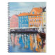 Copenhagen in a shining day, colourful buildings and cafes, some boats on the water"By reflections", original oil painting
