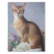 A stylish Abyssinian cat perched atop a lace-adorned pedestal graces this notebook cover. Soft florals and muted tones create a painterly, elegant design perfect for journaling or sketching.