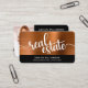 Present your best self to your clients. Two lines of simple white fancy handwritten script typography and sans serif typography overlay a sleek, sophisticated faux brushed copper foil metallic background and a black band on the front of this bold, elegant, graphic business card. Your personal photo, custom qr code and contact info overlay dramatic black on the back. Personalise with your full name and business on the front. Fill in the back side with the photo of your choice, qr code, phone numbers, address, email, website and social media accounts. Choose from rounded or square corners. Makes a chic, professional, and stylish statement wherever you go.