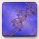 A flutter of sapphire, copper, and white fractals in the shape of butterflies dance across a royal blue background, overlaid with copper framing and sparkling bright blue gems.