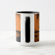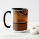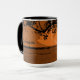 Copper, dark orange and black sunset mug, with a name that can be changed, or removed. The design has been edited for effect.