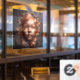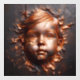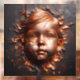 An abstract portrait of a young boy seamlessly embedded in charcoal granite. The artistically crafted face, sculpted in copper metal, takes on a 3d allure. This unique and imaginative artwork captures the purity and charm of childhood innocence with a touch of artistic flair.