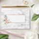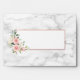 Create the perfect wedding invitation set with this pretty, elegant envelope design, featuring peach pink watercolor roses and flowers, on the flap and on the front, with carrera marble background, both inside and out! To finish it off, a faux copper rose gold border around the address box. Part of an invitation suite. Copyright Elegant Invites, all rights reserved.